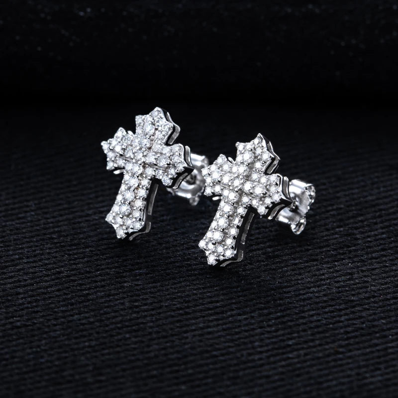 These Moissanite Iced Out Cross Stud Earrings are crafted from premium 925 sterling silver and feature dazzling D color VVS1 moissanite stones that shine with elegance and precision. Their bold cross design blends hip-hop flair with refined sophistication, making them perfect for parties, anniversaries, and everyday statement wear. Each pair comes with a GRA certificate, gift box, and polishing cloth — a luxurious and meaningful jewelry piece for both men and women.